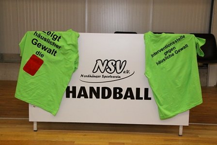 Die Damenhandballmannschaft des NSV sieht das genauso und trägt in der laufenden Spielsaison leuchtend grüne T-Shirts mit der Aufschrift: Zeigt häuslicher Gewalt die rote Karte!. Diese Aussage spiegelt nicht nur den Standpunkt des NSV wieder, sondern ist auch als Aufforderung zu verstehen. Gesponsert wurden die T-Shirts von dem Friseursalon Die Schnittstelle Nordhausen, Altendorf 1.