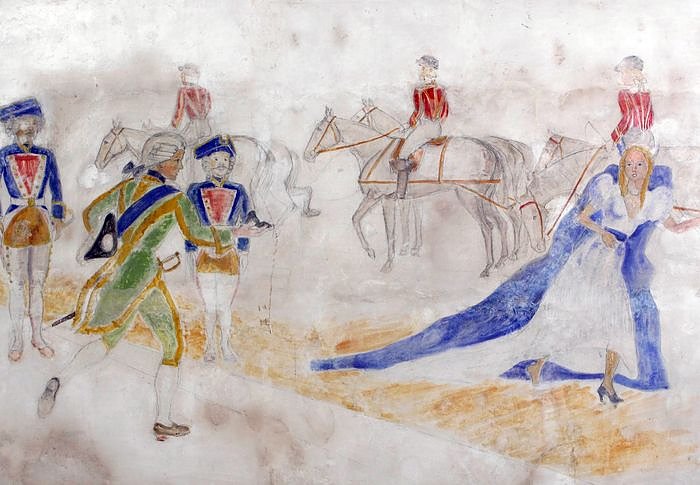 Solche Wandbilder in KZ-Gebäuden waren nicht unüblich. Meistens zeigten die Gemälde Motive, die eine gedankliche Flucht aus der grausamen Lagerrealität ermöglichten, oft Karikaturen oder – wie in diesem Falle – Märchenszenen. Mit der Ausführung wurden künstlerisch begabte Häftlinge beauftragt, die dafür kurzzeitig von der mörderischen Zwangsarbeit freigestellt wurden.
