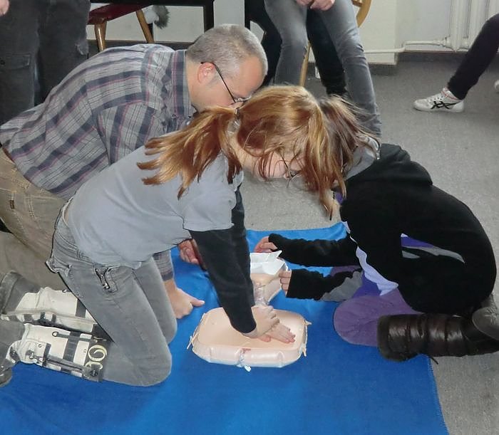 Jeden Freitag scharen sich 14 wissbegierige Schülerinnen und Schüler um Laura Hunger, Ronja Burgmeier und Marie-Christin Apel. Um die erste Hilfe zu erlernen. Woche für Woche werden diese jungen Menschen dazu ausgebildet, ihren Mitschülern und anderen Menschen zu helfen, wenn diese sich verletzt haben. Doch am vergangenen Freitag war alles etwas anders: Der gewohnte Unterricht, bei dem man die Wundversorgung lernt, fiel aus. Denn es hatte sich Besuch angekündigt.