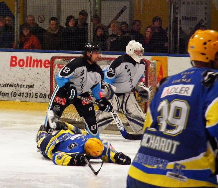 Aus einem Gewühl hinter dem Tor sprang der Puck hoch über den Kasten Adendorfs Keeper Michal Marik an den Rücken. Von dort tropfte die Hartgummischeibe dem Keeper auf die Schoner und wurde letztlich von ihm selbst im Rettungsversuch über die eigene Torlinie bugsiert (39.).