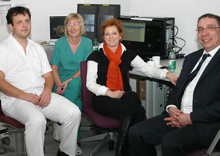 Autor: nnzwährend der Installation der Hard- und Software der Firma iCAD. Von rechts nach links: Herr Ballauf, Geschäftführer iCAD Deutschland, Frau Regner, Applikationsspezialistin iCAD Oberärztin Dr. Kott, Chefarzt Dr. Malich