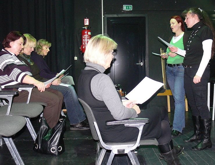 Die Lehrer erfuhren zum Thema Musiktheater u. a., wie man beispielsweise eine Arie im Unterricht einsetzen kann, lernten einen Kanon und machten szenische Übungen dazu. Sehr lehrreich war auch der Tanzworkshop mit stilisierten Bewegungen, in dem die Teilnehmer lernten, wie man Alltagsbewegungen bewusst ausführen kann und in tänzerische Bewegungen bringt. Viel Spaß gab es auch bei den selbst choreographierten kleinen Tänzen mit Bambusstäben und Tüchern.