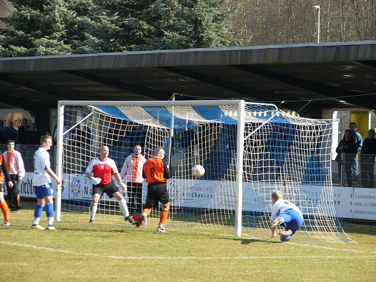 Dann völlig überraschend in der 19. Spielminute der Ausgleich durch Jan-Phillipp Rose, dessen Schuss aus rechter Position – auch für das Publikum – völlig überraschend doch im rechten oberen Winkel des Tors von Mark Reiter landete. Das gab den Gastgebern wieder Auftrieb.