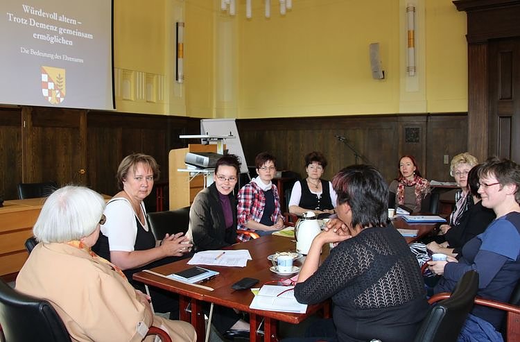 Im Rahmen des Projekts Würdevoll altern – Trotz Demenz gemeinsam ermöglichen hat das Landratsamt hat zu einer Gesprächsrunde eingeladen, um bestehende Strukturen zur ehrenamtlichen Seniorenbegleitung vorstellen und neue Ehrenamtliche zu gewinnen. Die Seniorenberatungsstelle des Landkreises arbeitet bereits mit rund 20 Ehrenamtlichen zusammen, die ältere Menschen im Alltag unterstützen – gehen gemeinsam Spazieren oder Bummeln, Kaffee trinken, reden, lesen vor oder helfen beim Arztbesuch.