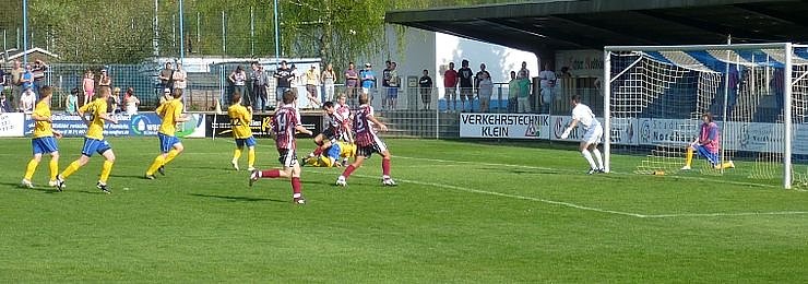 Den wohl schönsten Angriff des gesamten Spiels leitete Stephan Hoffmann auf der rechten Seite ein. Der spielte zu Klaus, der den Ball mit der Hacke auf Töpfer leitete. Von dort aus folgte das Zuspiel auf Marcus Vopel, dessen Schuss von einem Verteidiger noch von der Linie gekratzt wurde.
