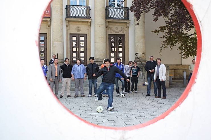 Auf dem Theatervorplatz fand heute Nachmittag ein Event der besonderen Art statt. Studenten der Hochschule für Musik Franz Liszt Weimar traten beim Torwandschießen gegen die Kicker von Wacker 90 Nordhausen an. Von der Veranstaltung berichtet Tobias Wendehost…