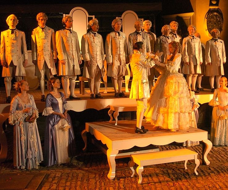 Die Damen sollten das 16 Lebensjahr vollendet und Freude am Theaterspielen haben. Regisseur Holger Pototzki, der vor drei Jahren bereits Rossinis Aschenbrödel (Foto) auf dem Schlosshof inszenierte, setzt in diesem Jahr erneut auf die weibliche Bevölkerung Sondershausens. Voraussetzungen für das Mitmachen ist natürlich, dass alle Vorstellungstermine ab dem 24. Juni wahrgenommen werden können. Ebenso sollten sich Interessierte auf Proben ab dem 23. Mai 2011 in Sondershausen einrichten.