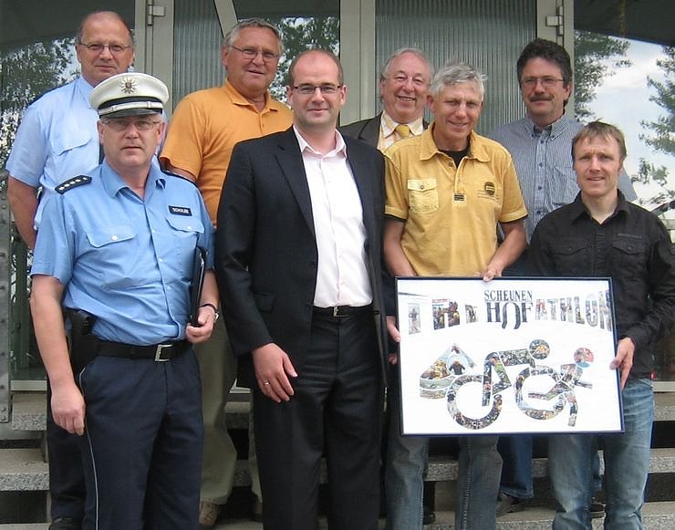 Autor: nnzVon links: Bernd Recknagel, Berufsfeuerwehr Nordhausen, Jochen Schulze, Polizeiinspektion Nordhausen, Siegfried Janiszewski; Präsident des Kreissportbundes Nordhausen, Matthias Jendricke, Bürgermeister der Stadt Nordhausen, Günter Rümmler, Fachbereich Straßenverkehr des Landkreises Nordhausen, Hans-Jürgen Fischer, SV Nordhausen 90, Lutz Maschke, Bauamt der Stadt Heringen und Dr. Ulrich Konschak, SV Nordhausen 90.