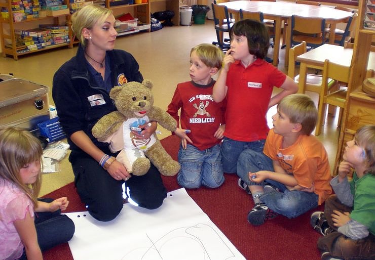 Aber auch mit lustigen Spielen und Teddy Robert wurde den Kindern die Angst vor Spritzen und die Scheu, verletzten Menschen in Notsituationen zu helfen, genommen.