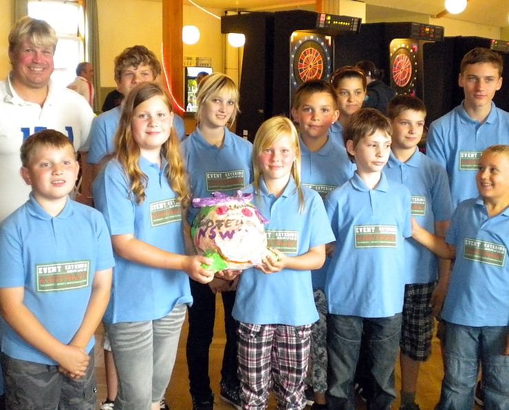 Durch die gute Zusammenarbeit und das disziplinierte Verhalten der Kinder war es den Mitgliedern des Dartvereins Woffleben/Niedersachswerfen ein großes Bedürfnis den Kindern und Jugendlichen eine Freude zu bereiten. In den vergangenen sechs Monaten warben sie deshalb bei Freunden und Bekannten, um den Kindern und Jugendlichen neue T-Shirts zu sponsern. Da der Dartverein eng mit der Kontrast Event Agentur zusammen arbeitet beschloss sich die Geschäftsleitung den Rest des noch fehlenden Betrages dazu zu geben.