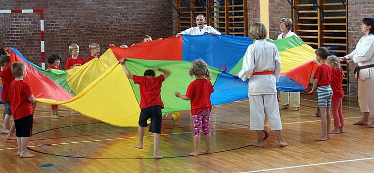 Autor: nnzOb Zeitungen, Bieruntersetzer, Spielkarten oder Handtücher, man kann so vieles verwenden und daraus eine Kind gerechte Bewegungsgeschichte basteln. Es gibt allerdings auch spezielle Trainingsgeräte, die sich besonders gut für die jüngsten Sportler eignen. In dieser Hinsicht hat eine normale Schulturnhalle natürlich einige Ausstattungslücken. Ganz oben auf der Wunschliste stand ein Schwungtuch, auch Fallschirmtuch genannt.