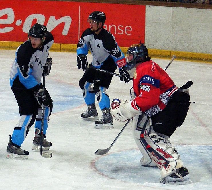 Autor: nnzChristian Schock (links) hat seinen Vertrag beim ESC verlängert und wird in der kommenden Saison wie in dieser Szene aus dem Spiel in Timmendorf wieder gemeinsam mit Erik Pipp (mitte) auf Torejagd gehen.
