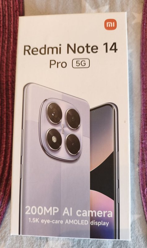 Verkaufe hier das Xiaomi Redmi Note 14 Pro 5G in der Farbe lavendar purple mit 256 GB Speicher, 8 GB RAM, 200 MP AI Kamera, 5G, Dual SIM, WLAN, Bluetooth, Face Unlock, Fingerabdruck uvm.