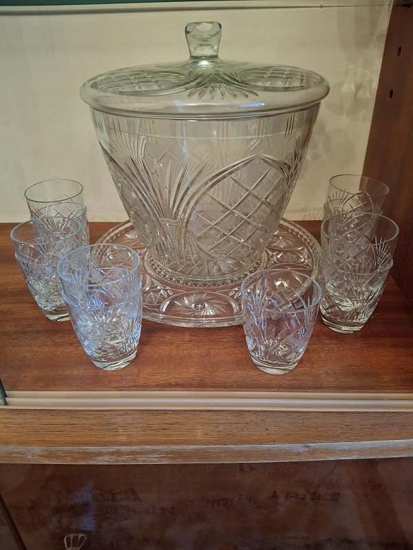 Kristallbowle (Foto: ) -Kristallbowle mit 11Gläsern auf Kristallteller