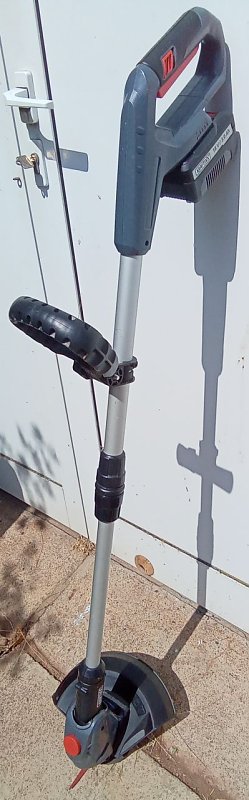 Vorderseite  (Foto: ) Biete hiermit einen Rasentrimmer von Kraftixx 18V 3.0 Ah. Sehr leistungsstark auch bei dichtem Bewuchs! Komplett mit Ladestation und Ersatzmesser als Starter Kit. Ideal für den Vorgarten zum perfekten Schnitt ohne Pflanzen und Sträucher zu beschädigen wie leider oft mit der Sense geschieht... Abgabe aus Nachlass, nur ca zwei mal genutzt. Neupreis Komplettset 72,88 Euro. Zum kleinen Preis von 55 Euro.