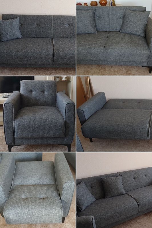 Neuwertige sehr gepflegte Wohnzimmermöbel abzugeben.Alle Couchteile sind ausklappbar.Besteht aus Dreisitzer , Zweisitzer und Sessel.Die Wohnlandschaft besteht aus einem Großen Schrank ein kleinerer ,ein TV Schrank und eine Kommode.Ein Couchtisch gehört ebenfalls dazu.Preis VB