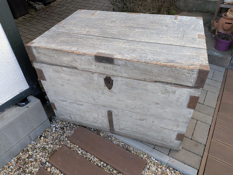 Biete eine sehr dekorative alte große Holztruhe