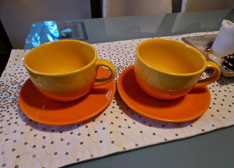 Biete: 2 Jumbo Tassen von flirt Orange Gelb