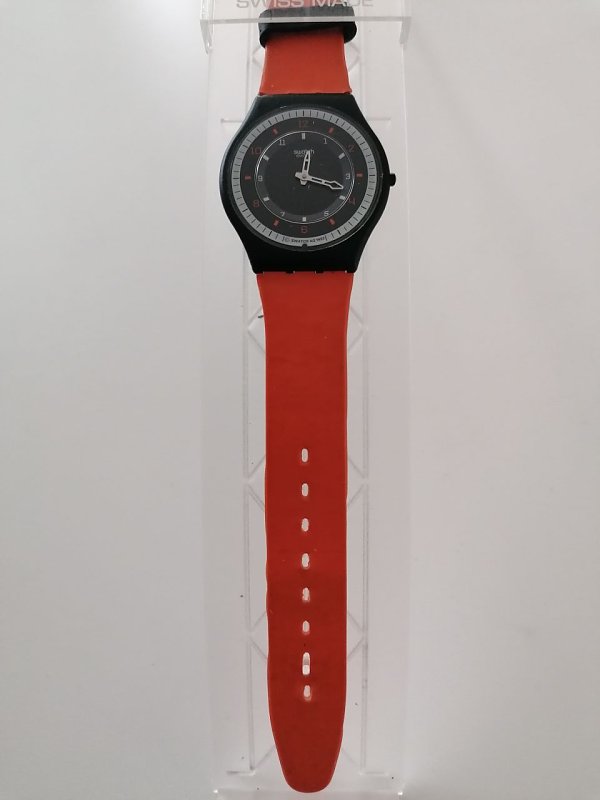Biete eine Swatch Skin mit orangen Armband.