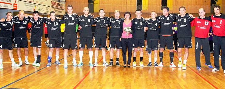 Autor: nnzDer Nordhäuser Anhang war gespannt, wie das neue Outfit bei den Handballern aussieht. Zwar konnten sie es bereits auf den Bildern in der NNZ erspähen, doch Live ist Live. Nach der Begrüßung und dem traditionellen Einlaufen der Mannschaften war es dann soweit. Mannschaftlich geschlossen, wie in der nachfolgenden Begegnung, präsentierten sie sich dem Publikum. Das Team bedankte sich bei Claudia Dudek, Marketingmitarbeiterin des Badehauses, für die Unterstützung.