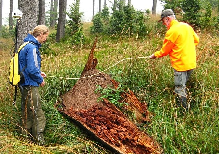 Autor: nnzAmeisenschützer Helmut Höner und Nationalpark-Zoologe Andreas Marten beim Vermessen eines Nestes der Kahlrückigen Waldameise im Nationalparkrevier Oderhaus; Foto: Gunnar Dachsel