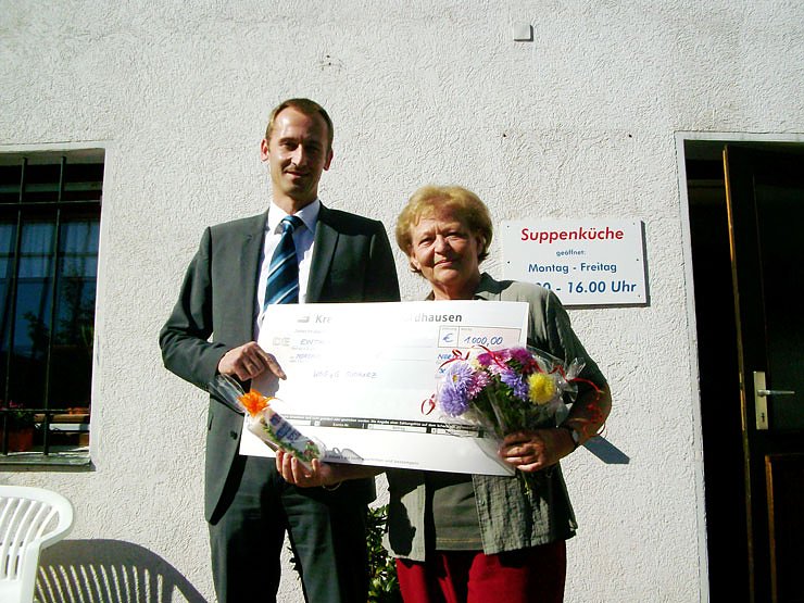 Eine Geburtstagsfeier bietet somit die Möglichkeit Geschenke zu verteilen, um die Leistungen zu honorieren. Ein Geburtstagsgruß kam etwa von der Nordhäuser Wohnungsgenossenschaft (WBG), die zur Feier des Tages 1000 Euro an Helga Rathnau überreichte. Das Engagement der Tafel ist schon einzigartig. Wir als Wohnungsgenossenschaft sind gerne bereit, unseren Beitrag für diese Arbeit zu leisten, begründete Sven Dörmann aus dem WGB Vorstand die Zuwendung. Daneben finanziert die Zeitarbeitsfirma randstad ein Jahr lang die Arbeitsstelle einer Mitarbeiterin bei der Tafel. Einige privaten Spenden, die Zusicherung von 23000 Euro durch die Stadt Nordhausen und Sachspenden durch das Möbelhaus Möno komplettierten die Liste der Schenkenden.