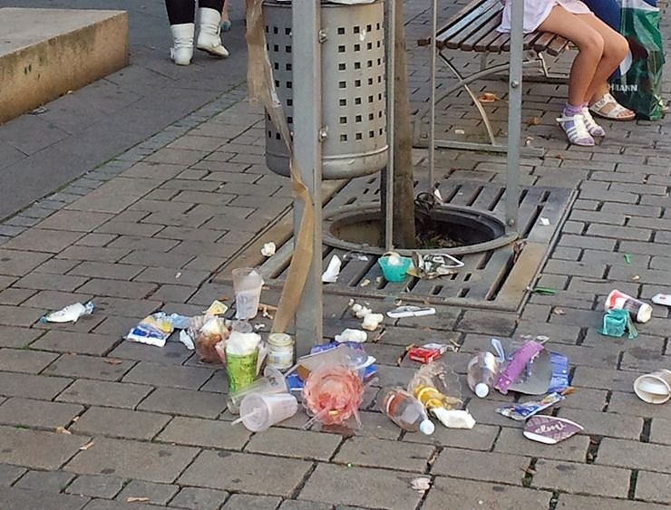 Allerdings sollte vielleicht auch noch an das Gewissen der Passanten appelliert werden: Wenn sie sehen, dass ein Papierkorb schon voll ist, dann ist es bestimmt nicht so schwer für sie, ihren Müll bis zum nächsten oder übernächsten zu tragen, oder eventuell sogar mit nach Hause zu nehmen - im Interesse des Antlitzes der Stadt?