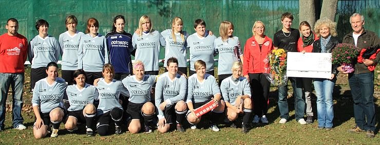Frau Keller konnte die Salzaer Damen mit einem Scheck erfreuen. Die FSG-Spielerinnen können ihre Mannschaftskasse mit 300 Euro auffüllen. Das Geld kommt vom Verein Alternative 54 Erfurt. Die Abgeordneten der Fraktion Die Linke im Thüringer Landtag spenden seit 1995 die automatische Erhöhung ihrer Abgeordneten-Diäten an die Alternative 54 Erfurt, der die Mittel – mittlerweile über 700.000 Euro - an soziale, kulturelle und ehrenamtliche Vereine sowie Jugendprojekte weitergibt.