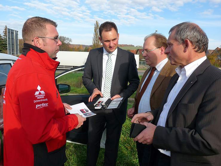 Dieses "reinrassige" Elektrofahrzeug wird vom Autohaus Peter in Sondershausen zur Verfügung gestellt. MiEV steht dabei für Mitsubishi innovative Elektric Vehicle. Geschäftsführer Andreas Peter und Verkaufsleiter Jens Kupfer kennen die Vorteile des kompakten, spritzigen und komfortablen Flitzers.