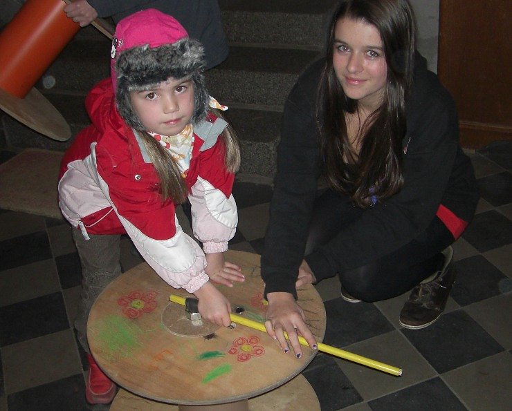 Über 60 Riesengummimotoren sind in den vergangenen Wochen in den Gruppen des Nordhäuser Kinder-Kirchen-Ladens gebaut worden. Solch ein Motor besteht aus eine großen Kabelrolle, einem Fahrradschlauch, einer Holzstange und einer großen Eisenmutter. Wenn er gut aufgezogen ist kann er ohne weiteres an die 100 Meter rollen. Morgen zum Beispiel...