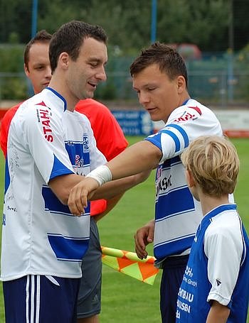 Teichmann bekommt von Sven Pistorius die Kapitänsbinde überreicht (Foto: Wacker Nordhausen)