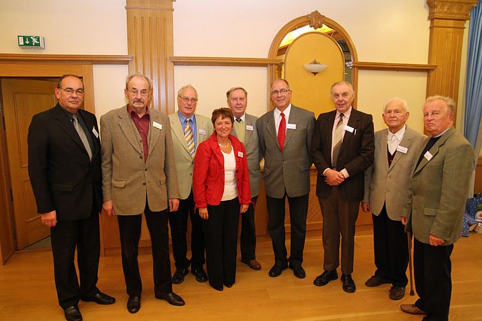 Foto von li. nach re. : Peter Fanselow (IG BCE Thüringen), Günter Ehmke (Bleichrode), Klaus-Jürgen Lippmann (Großbodungen), Uta Schlünß (Geschäftsstellenleiterin Knappschaft in Sondershausen), Willi Stelzig (Menteroda), Manfred Kleinschmidt (Mühlhausen), Karl-Heinz Rausch (Sondershausen), Hans Scheiding (Wiehe), Hans-Dieter Kliche (Nordhausen)