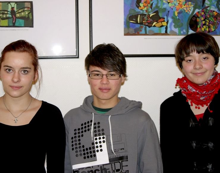 Julia Rebecca Hotopp (Kyffhäusergymnasium/links) und Kevin Rei (Humboldt-Gymn.) absolvierten den Wettbewerb in Englisch. Franka Angelstein (Humboldt-Gymnasium) nahm zu wiederholten Mal am Wettbewerb teil, diesmal in Russisch.