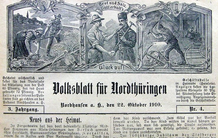 Seit einigen Tagen stöbert Bodo Schwarzberg ab und zu im "Volksblatt für Nordthüringen" aus dem Jahre 1910, das er bei einem Bekannten einsehen kann. In loser Folge möchte er Sie, liebe nnz/kn-Leserinnen und -Leser mit einigen Veröffentlichungen der damaligen Zeit vertraut machen. Heute: Volksbräuche aus Nordthüringen...