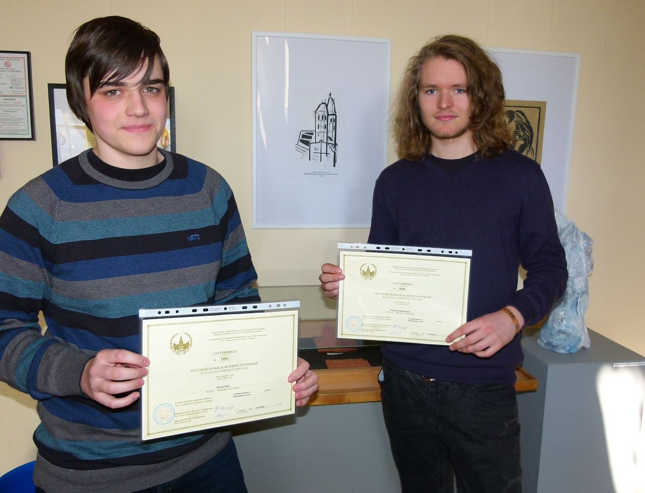 Schon im Herbst stellten sich zwei Schüler des Humboldt-Gymnasiums der Herausforderung, an der von der Lomonossow-Universität Moskau durchgeführten Zertifikatsprüfung Russisch als Fremdsprache teilzunehmen. Jetzt gab es die Zertifikate...