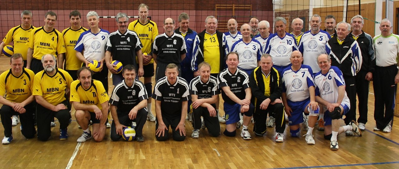Autor: nnzDer SVC II, die Mannschaft der Ü 59, belegte am Ende einen guten dritten Platz. Im Modus jeder gegen jeden über zwei Gewinnsätze mit anschließendem Tiebreak ging das Turnier in der Käthe-Kollwitz-Halle in knapp 6 Stunden über die Bühne. Gleich das erste Spiel avancierte zum internen Vereinsderby. Der SVC II brauchte den ersten Satz zum warmwerden, die erste Mannschaft zeigt ihr ganzes Können und ließ nur 2 Punkte des Kontrahenten zu. Im Folgesatz zeigten Dr. Jürgen Poerschke, Karl-Heinz Steglich, Dr. Eberhard Krug, Horst Fischer, Lutz Kurth, Peter Dalmer, Günter Kohl, Rudi Spangenberg und Dieter Rieche das die älteren Semester auch Volleyball spielen können. Mit letztem Einsatz wurden die wuchtigen Angriffe vom Parkett gekratzt und seinerseits Angriffe aufgebaut. Jeder Punkterfolg wurde frenetisch bejubelt, zu guter letzt wurde mit 12 Zählern die Punktausbeute im Vergleich zum vorherigen Satz versechsfacht.