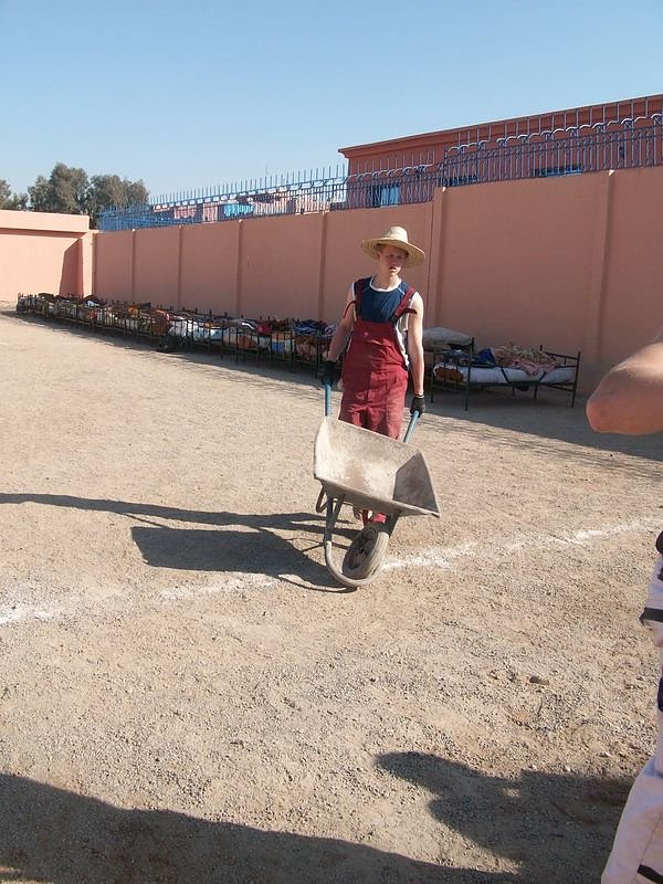 Wir sind heute um 7:00 Uhr aufgestanden und haben um 08:00 Uhr gegessen. Um 9:00 Uhr haben wir Arbeitstherapie gemacht und zwar den Fußballplatz und die Basketballplätze gekalkt und unser Wandbild zu Ende gemalt. Nachmittags haben wir gegen die marokkanischen Jugendlichen Fußball gespielt und 12:1 verloren und waren danach alle recht fertig.Abends haben wir Taschengeldeinkauf gemacht, Tajin gegessen und Nudeln mit Tomatensoße. Dann haben wir alle noch unseren Marokko-Experten verabschiedet, weil der morgen wieder nach Deutschland zurückfliegt. Dann sind wir schlafen gegangen.