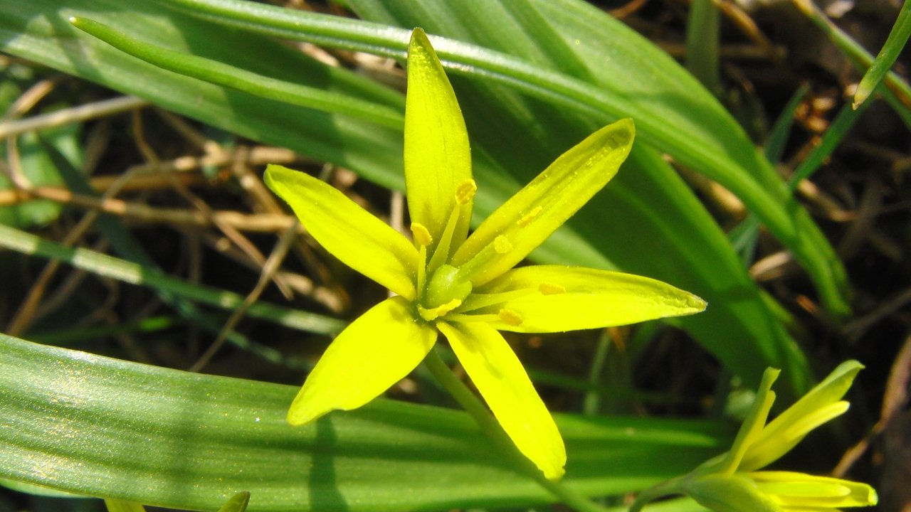 Wir haben in Nordthüringen das Glück, dass alle in Deutschland siedelnden Goldsternarten auch hier zu finden sind. Allerdings lassen sie sich vom Laien nur schwer auseinander halten. Alle blühen, der Name sagt es, gelb. Eine genaue Betrachtung ist Voraussetzung für eine sichere Bestimmung. Ich möchte Ihnen, liebe nnz-Leser in den nächsten Wochen alle genannten Arten kurz vorstellen und werde dafür versuchen, alle in unserer Umgebung aufzufinden. Und da muss ich mich beeilen. Denn alle Vertreter der zur Familie der Liliengewächse zählenden Arten der Gattung blühen nur für kurze Zeit. In der fünften Reihe der Serie Die Pflanze von nebenan machte ich sie mit dem sehr seltenen Böhmischen Goldstern vertraut. Heute folgt nun der häufigste einheimische Goldstern, der Wald-Goldstern Gagea lutea. Gegenwärtig erfreut die Art z.B. die Spaziergänger im Nordhäuser Stadtpark. Er gehört zu jenen Arten der Gattung, die über nur ein Grundblatt verfügen. Dieses ist zwischen 7 und 15 mm breit und endet in einer ca. 5 cm, sich allmählich verschmälernden Kaputzenspitze (siehe Foto). Zudem ist dieses Blatt meist fünfkantig und im Gegensatz zu jenem beim ebenfalls häufigen Wiesen-Goldstern am Grunde weißlich. Der Blütenstand ist eine wenigblütige Scheindolde.