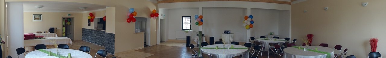 Die Geschichte des Umbaus der ehemaligen Gaststätte beginnt im Jahr 2006. Damals wurde seitens des Vereins die Umgestaltung des gesamten Terrains in Angriff genommen. Parallel zur Etablierung eines Familien-Camps machten sich die Horizont-Mitarbeiter an die Sanierung des Gaststättenkomplexes. Entstanden sind ein zweigeteilter Saal, zwei kleinere Räume und eine funktionale Küche. Ob nun Familien, Einzelpersonen, Gruppen oder Vereine, sie alle können die Räumlichkeiten mieten. Wir bieten dazu vernünftige Konditionen an, die sich an der Deckung unserer laufenden Kosten für die Immobilie orientieren”, so Wolf und Horizont-Geschäftsführer René Kübler ergänzt: ”Die Betreibung des Objekts ist nicht unsere Aufgabe, wir haben die Voraussetzungen geschaffen, weil meinen Mitarbeitern die Sanierung dieses Kleinods sehr am Herzen lag. Jetzt muss aus dem Gebäude das werden, was der Name beschreibt: ein Haus für die Gemeinschaft des Dorfes Gudersleben.”