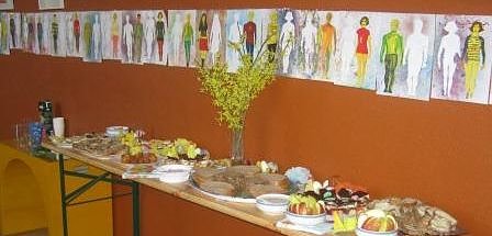 Nach kurzer Absprache mit den Eltern standen viele fleißige Helfer punkt 8 Uhr in der Schulküche bereit und aus den Rezeptideen entstanden viele leckere Frühlingsspeisen: z. B. Frühlingsquark, Tomatenbutter, Bärlauchbutter, Käsekäfer, Tiramisu usw. Es wurden Tische gedeckt und ein leckeres Frühlingsarrangement entstand.