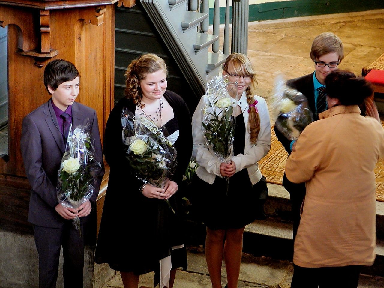 Mit der brennenden, an der Osterkerze entzündeten Taufkerze in der Hand und der Wiederholung ihres Taufspruches innerhalb des Konfirmationsritus´ bekräftigten sie ihren Willen, mit nun erweiterten Pflichten und Rechten in und mit der Kirchengemeinde leben zu wollen. Die Vorsitzende des Gemeindekirchenrates, Liane Köhn, beglückwünschte sie zu diesem Entschluss mit einem Blumenstrauß.