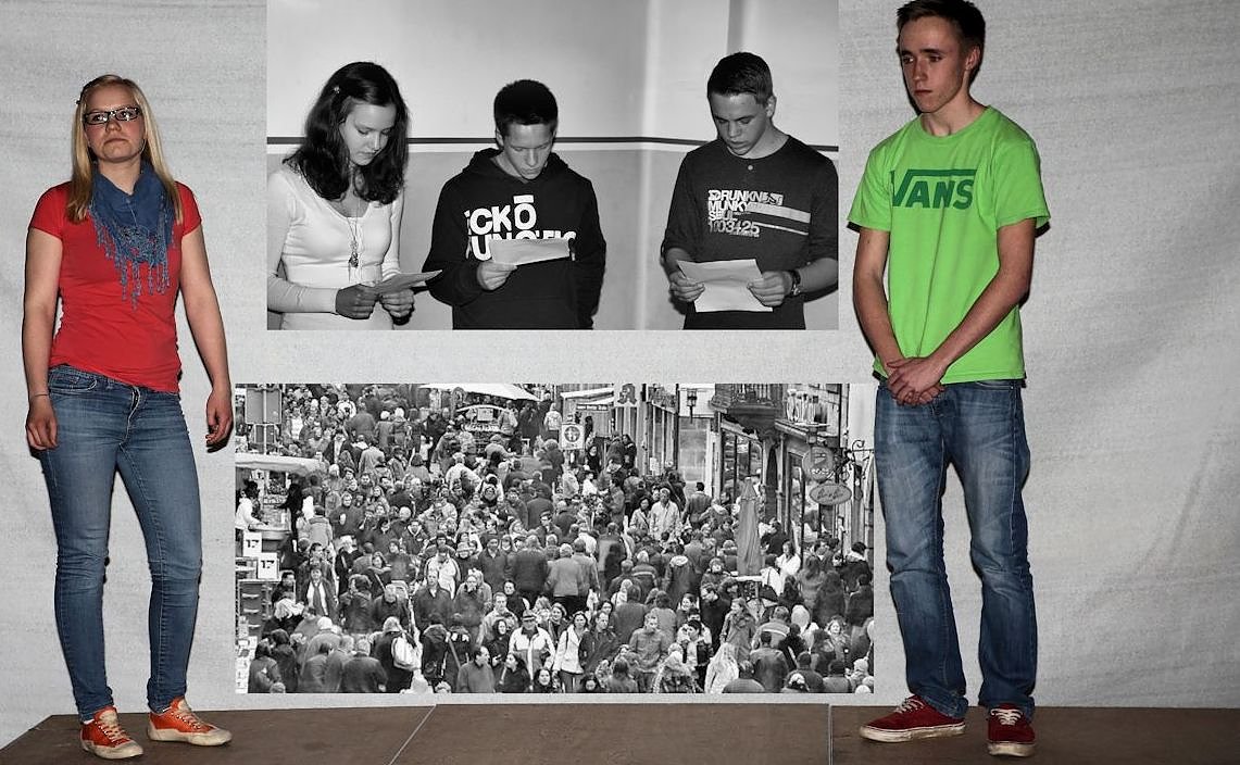 Schüler der zehnten Klasse zeigten beispielhaft auf, wie literarische Figuren aus der Kommunikationslosigkeit und dem Einheitsgrau der Gesellschaft fanden, um die eigene Individualität ausleben zu können. Instrumentale Beiträge auf dem Klavier und der Trompete on Bach bis Brahms unterstützten das Anliegen der Gymnasiasten.