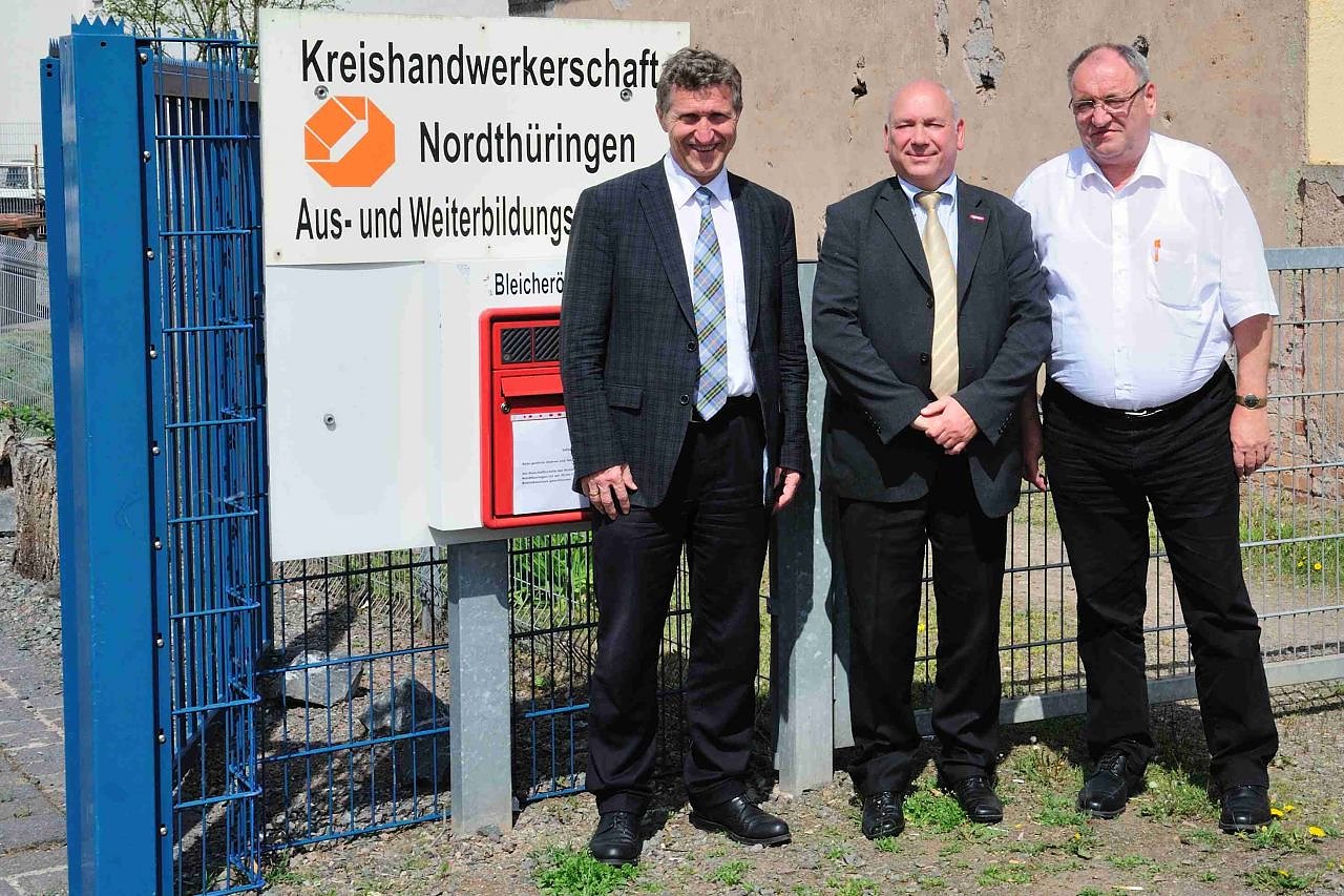 Dieter Worm erkannte sofort den Fachmann im Bauhandwerk vor sich, als Egon Primas fachmännisch zur Maurerkelle griff. Egon Primas zeigte sich seinerseits sehr beeindruckt von den Möglichkeiten, die hier für Weiterbildung geboten werden. Für mich ist die hohe Qualität des Handwerks immer noch ein überragender Wettbewerbsvorteil, auch und gerade im zunehmenden Wettbewerb mit der Konkurrenz in der EU. Den Werbeslogan ‚Das Handwerk. Die Wirtschaftsmacht von nebenan!‘ muss auch die Lokalpolitik begreifen! Vor allem ist dafür zu sorgen, dass die öffentliche Hand so viele Aufträge wie möglich bei dem regionalen Handwerk platziert.Thüringen hat traditionell eine starke handwerkliche Basis. Im Vergleich zu anderen Regionen in den jungen Ländern belegt Thüringen vordere Plätze und verzeichnet damit beste Grund- und Strukturdaten. Das Handwerk ist ein bedeutender und vielschichtiger Wirtschaftsfaktor in Nordthüringen. Es leistet einen unverzichtbaren Beitrag für die Wirtschaftsentwicklung, Beschäftigung und Ausbildung in dieser Region, sagte Klaus Zeh. Das Handwerk ist nicht nur der wichtigste Partner der täglichen Daseinsvorsorge, sondern auch ein wichtiger Zulieferer zur Industrie und Exporteur.