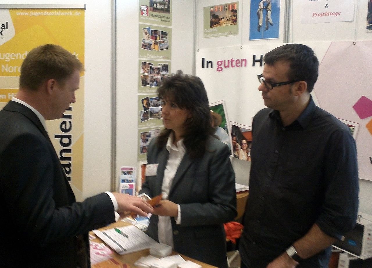 Minister Christoph Matschie (SPD) eröffnete das Bildungssymosium und besuchte anschließend den Ausstellungsbereich, wo er sich über Thüringer Bildungsinitiativen und -angebote informierte. Am Informationsstand des JugendSozialwerk Nordhausen zeigte er großes Interesse für das Modellprojekt "Klassenreise zur Musik", das von Rolf Zuckowski und seiner Stiftung "Kinder brauchen Musik" sowie der Nordhäuser Rothleimmühle initiiert wurde.