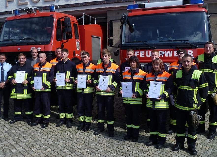 Autor: nnzWährend der 70-stündigen Ausbildung ging es um Themen wie Rechtsgrundlagen, Brandbekämpfung, Fahrzeug- und Gerätekunde, Lebensrettende Sofortmaßnahmen sowie Technische Hilfeleistung. Besonders hervorzuheben ist, dass die Kameraden neben Familie, Schule und Beruf während ihrer Freizeit diesen Lehrgang besuchten. Nicht wenige der Kameraden sind die Woche über auf Montage oder arbeiten in Schichten. Die Besonderheit bei diesem Lehrgang war, dass sich die Berufsfeuerwehr mit den Ausbildungsterminen an die Arbeitszeiten der Lehrgangsteilnehmer angepasst hat. Die Ausbildung fand individuell Freitag, Samstag, Montag und Mittwoch statt. Somit konnten auch Kameraden die im Schichtsystem oder an den Wochenenden arbeiten müssen, den Lehrgang besuchen, sagte René Willerbach von der Nordhäuser Berufsfeuerwehr.