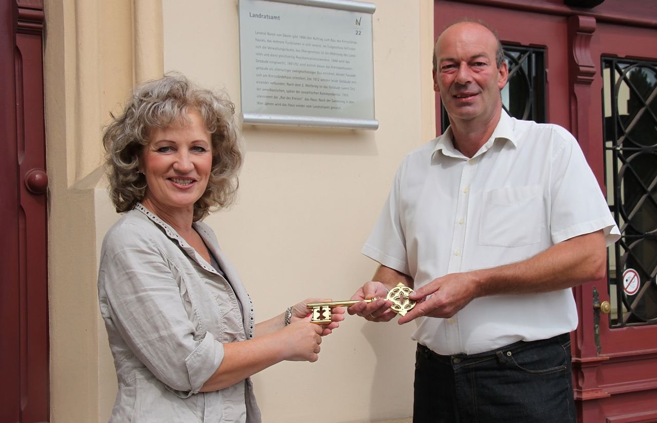 Autor: nnzHeute erhielt die neue Landrätin Birgit Keller symbolisch die Schlüsselgewalt zum Landratsamt in Nordhausen. Mit dem Schließen muss sie sich allerdings noch bis zum Sonntag gedulden.