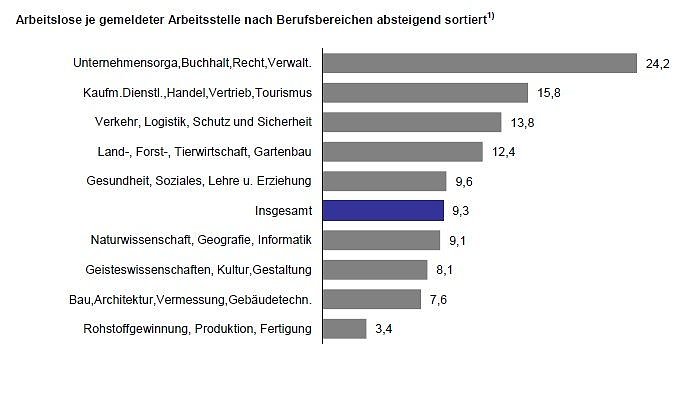 Aktuell liegt die Zahl der Bewerber um einen Ausbildungsplatz mit 1.532 um drei Prozent (-47) unter der des Vorjahres. Dem gegenüber standen 1.632 Ausbildungsstellen, 8,9 Prozent (+133) mehr als im Juli 2011. Anders als vor Jahren sind fast alle Stellen betriebliche Ausbildungsangebote. Auf 100 Ausbildungsstellen kommen rechnerisch derzeit 94 Bewerber.