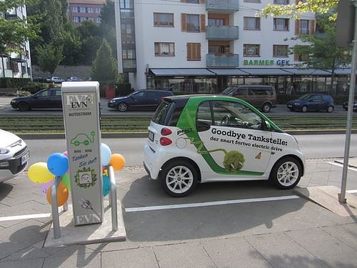 Denn seit heute gibt es in Nordhausen die erste "Tankstelle" für Elektroautos, die zur feierlichen Eröffnung des EVN-Service – Centers in der Rautenstraße eingeweiht wurde. Zwei Parkplätze hat die EVN vor ihren Räumlichkeiten gekauft und eine Stromzapfsäule installiert. Und wer schon ein Elektrofahrzeug hat, der kann dort momentan kostenfrei seinen kleinen E-Flitzer aufladen.