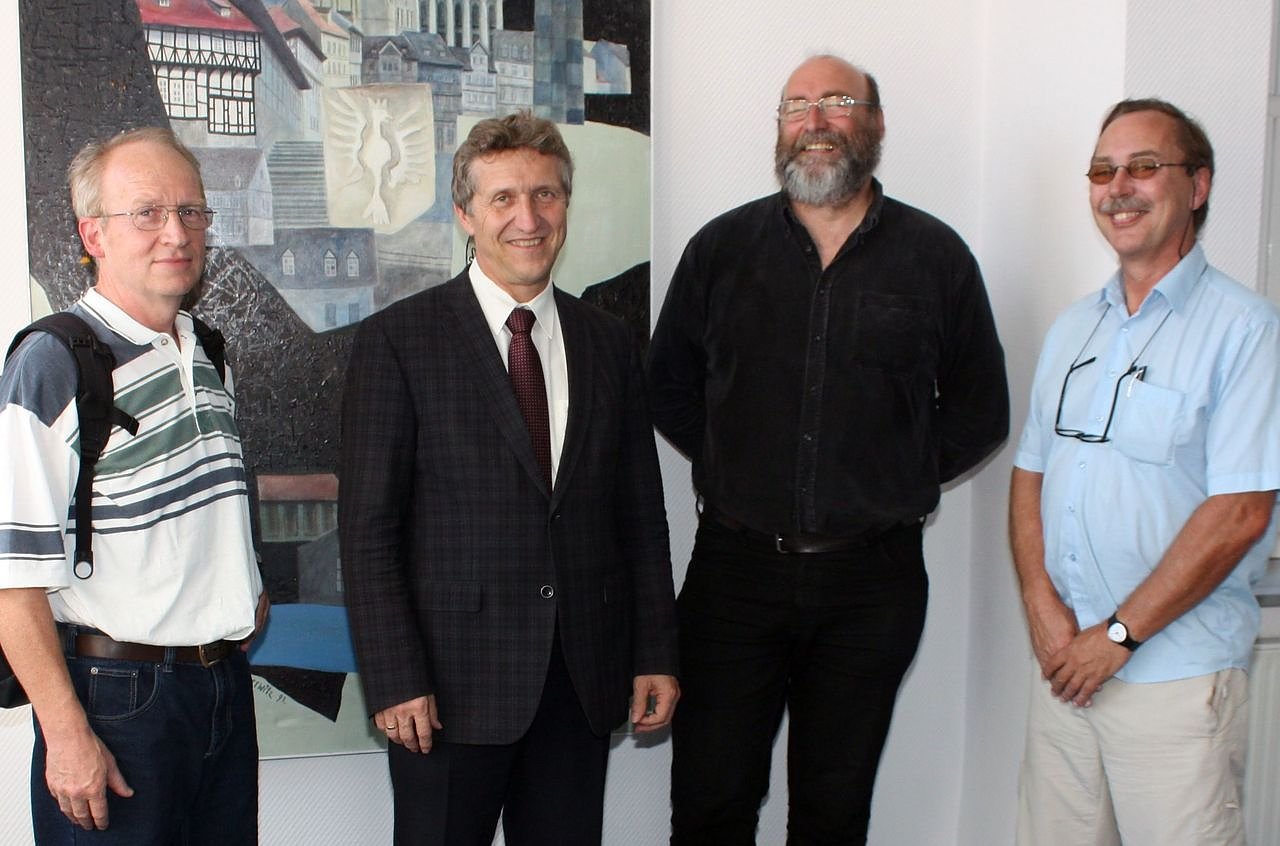 Mit Lothar Burkhardt (links), Dirk de Gooijer (rechts) und Karl-Heinz Gröpler (2. v. r.) vom ADFC-Nordhausen sowie Vertretern aus den zuständigen Ämtern sprach das Stadtoberhaupt offen über Defizite des städtischen Radwegenetzes und fehlende Radwegeanbindungen einiger Ortsteile, aber auch über die Möglichkeiten einer verbesserten Öffentlichkeitsarbeit sowie die Zusammenarbeit von ADFC und Stadt.