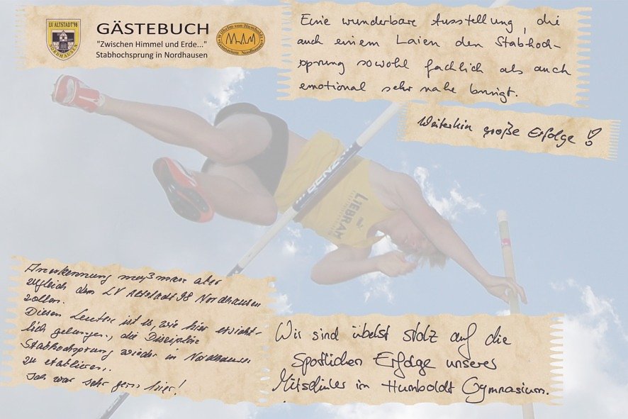 Der Zeitpunkt für die Schau hätte kaum passender sein können: 100. Geburtstag Rudolf Hagelstanges, 10jähriges Jubiläum der 4-Jahreszeiten-Pokalserie des LV Altstadt und durch die Spitzenleistungen bei Olympia 2012 ein gesteigertes Interesse auch an der regionalen Entwicklung dieser Disziplin.Schon 1883 erreichten Nordhäuser Turner beim Stabhochsprung 2,50 m. 1938 holte sich unser berühmter Schriftsteller Rudolf Hagelstange mit 3,68 m den Gau-Mitte-Meistertitel (heute vergleichbar mit Mitteldeutschen Meisterschaften). Mit bebendem Bambus sprang der Poet damals noch in eine einfache Sandgrube.